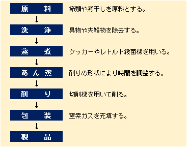 - 原料 かつお節などの節類やいわし等の煮干しを原料とする。